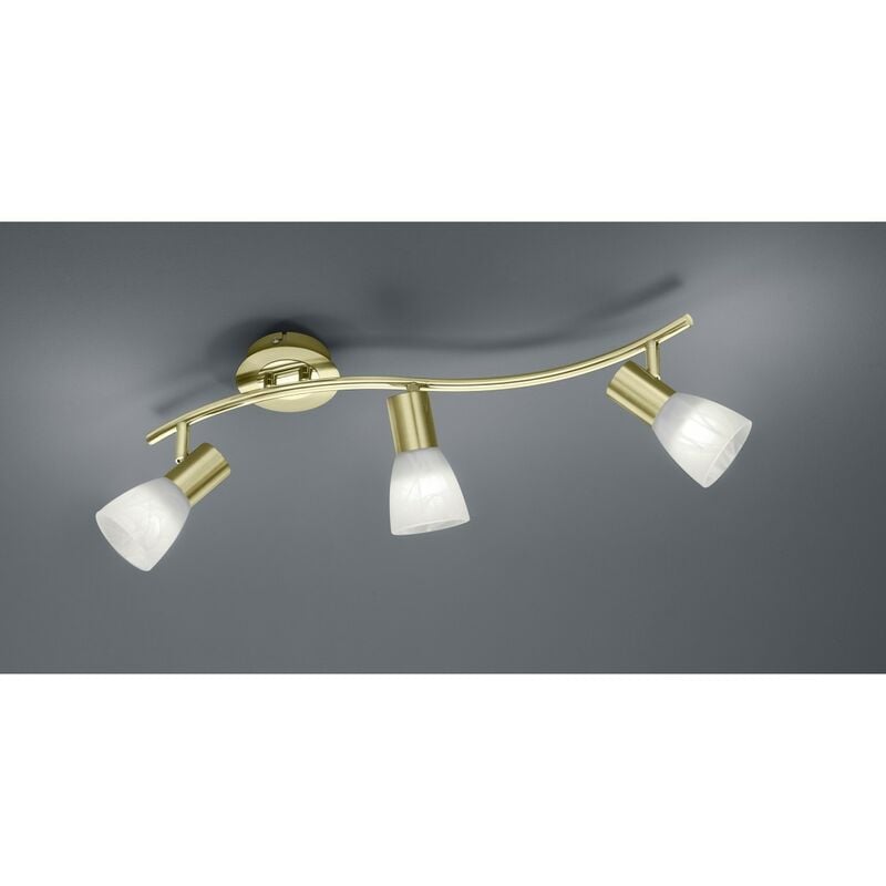 LEVISTO di Trio Lighting ha una struttura composta da una base rotonda a soffitto, braccio curvo realizzata interamente in metallo di colore ottone satinato e 3 faretti spot orientabili con paralumi in vetro alabastro. Dotata di 3 lampadine Led E14 da 5 watt, 400 lumen, 3000k luce calda incluse. Una volta guaste le lampadine sono facilmente sostituibili. Un elemento pratico e versatile, dal design moderno, funzionale grazie alla sua luce direzionale. Perfetto per essere installato ad esempio in bagno, all'ingresso, in un soggiorno o una camera da letto. Disponibile anche la versione di colore nichel opaco e altri articoli correlati della stessa serie.