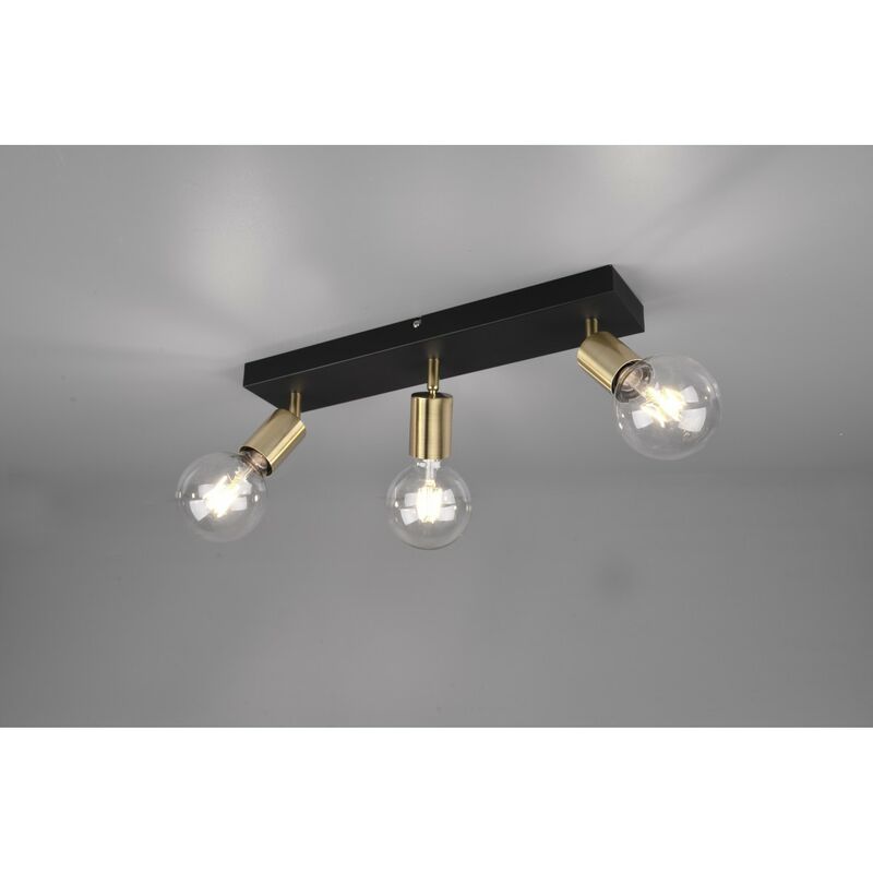 La plafoniera VANNES di Trio Lighting è composta da una struttura in metallo con base rettangolare di colore nero e 3 portalampada orientabili finitura ottone satinato. Dotato di 3 alloggi per lampadine E27 max 40 watt, acquistabili separatamente. Si consiglia l'utilizzo di lampadine in vetro a filamento Led decorative, sia per una migliore resa estetica sia per un maggior risparmio energetico. Un elemento economico, di facile installazione al soffitto, dal design semplice e versatile. Consigliato non solo per illuminare un punto specifico di interesse ma anche per dare un tocco originale e moderno alla vostra abitazione. Ideale ad esempio per una zona living, un ingresso o un corridoio. Disponibili anche le varianti di finitura nichel, bianco e nero e altri articoli della stessa serie.