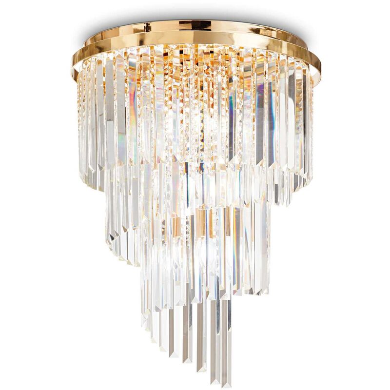 Lampada Carlton oro 500x690 mm Caratteristiche: Lampadina inclusa=No Kit fissaggio=No Attacco lampada=E14 Volt=220-240 V AC Watt=E14 max 12 x 40W Materiale=Metallo,Vetro Dimensioni= D 500 x H 690 mm