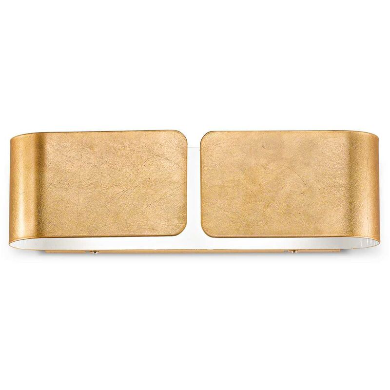 Lampada da parete oro L 440 x H 125 x P 110 mm Caratteristiche: Lampadina inclusa=No Kit fissaggio=No Attacco lampada=E27 Volt=220-240 V AC Watt=E27 max 2 x 60W Finitura=oro Colore rosone=oro Materiale=Metallo Dimensioni= L 440 x H 125 x P 110 mm