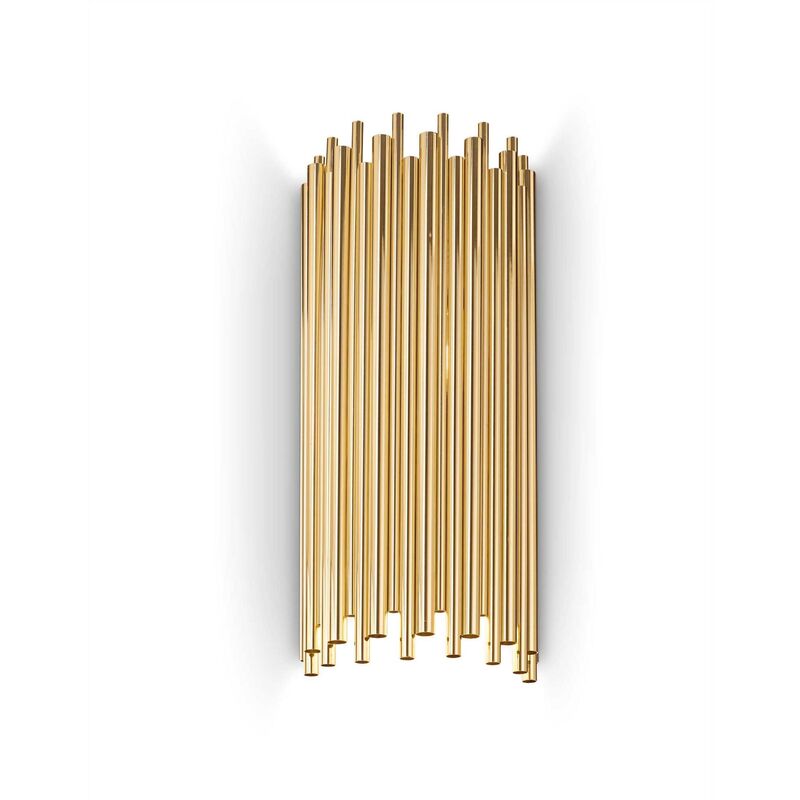 Lampada da parete oro L 250 x H 580 x P 170 mm Caratteristiche: Lampadina inclusa=No Kit fissaggio=No Attacco lampada=E14 Volt=220-240 V AC Watt=E14 max 2 x 40W Finitura=oro Colore rosone=oro Materiale=Metallo Dimensioni= L 250 x H 580 x P 170 mm