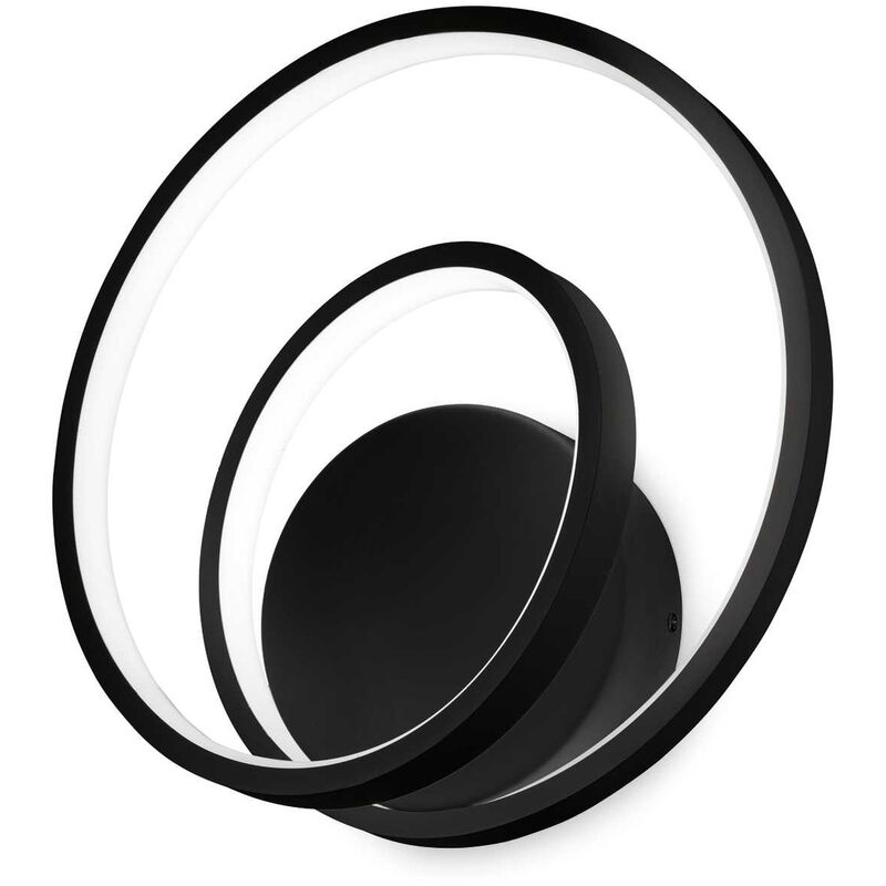 Lampada da parete nero L 290 x H 300 x P 80 mm Caratteristiche: Lampadina inclusa=Yes Kit fissaggio=No Attacco lampada=LED Volt=220-240 V AC Watt=LED 28W Finitura=nero Colore rosone=nero Materiale=Metallo,Plastica Dimensioni= L 290 x H 300 x P 80 mm