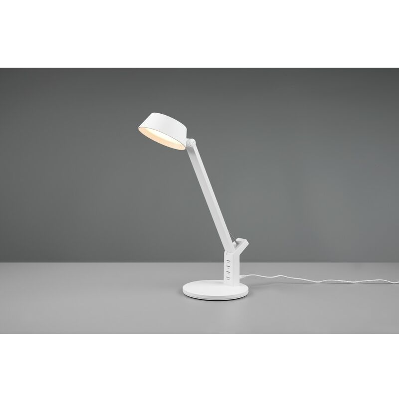 Lampada da Scrivania LED Touch Dimmer Bianco La lampada da scrivania AVA di Trio Lighting è composta da una struttura in plastica con braccio flessibile di colore bianco opaco. Dotata di sensore touch che permette di accendere la lampada a diversi livelli di intensità luminosa tramite dimmer integrato. Non compatibile con dimmer esterno. Modulo LED integrato 5 watt, resa luminosa 600 lumen, temperatura colore 3000k - 4000k - 6300k (luce calda, fredda e naturale). L'ultimo settaggio verrà memorizzato e utilizzato alla prima accensione della lampada. Una lampada pratica e versatile, indicata sia per la casa che per l'ufficio o lo studio, multifunzionale grazie anche alla connessione USB che funge da caricatore. Disponibile anche la versione di colore nero opaco. Caratteristiche: Struttura in plastica Braccio flessibile di colore bianco opaco Sensore touch con dimmer integrato Modulo LED integrato 5 watt Resa luminosa 600 lumen Temperatura colore 3000k - 4000k - 6300k Connessione USB
