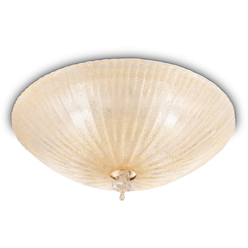 Lampada da soffitto ambra D 600 x H 200 mm Caratteristiche: Lampadina inclusa=No Kit fissaggio=No Attacco lampada=E27 Volt=220-240 V AC Watt=E27 max 6 x 60W Finitura=ambra Colore rosone=bianco Materiale=Vetro Dimensioni= D 600 x H 200 mm