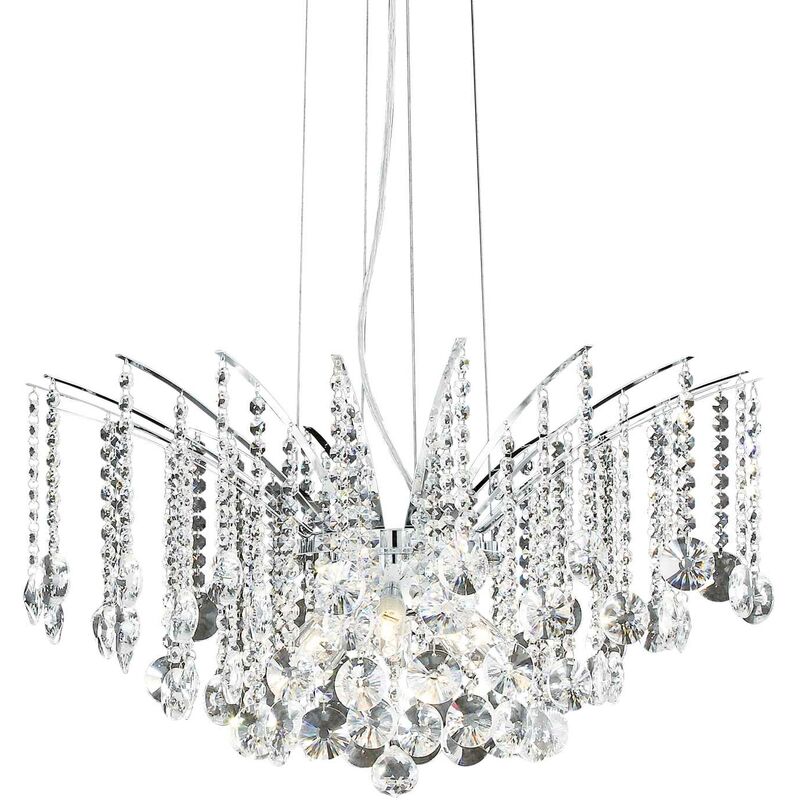 Lampada a sospensione cromo D 650 x H min 550 - max 1100 mm Caratteristiche: Lampadina inclusa=Yes Kit fissaggio=No Attacco lampada=G9 Volt=220-240 V AC Watt=G9 max 8 x 40W Finitura=cromo Colore rosone=cromo Materiale=Metallo,Vetro Dimensioni= D 650 x H min 550 / max 1100 mm