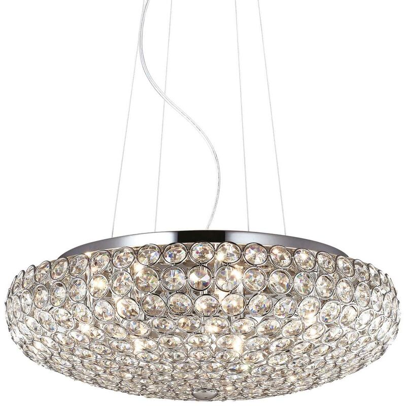 Lampada a sospensione cromo D 460 x H min 400 - max 1200 mm Caratteristiche: Lampadina inclusa=Yes Kit fissaggio=No Attacco lampada=G9 Volt=220-240 V AC Watt=G9 max 7 x 40W Finitura=cromo Colore rosone=cromo Materiale=Metallo,Vetro Dimensioni= D 460 x H min 400 / max 1200 mm