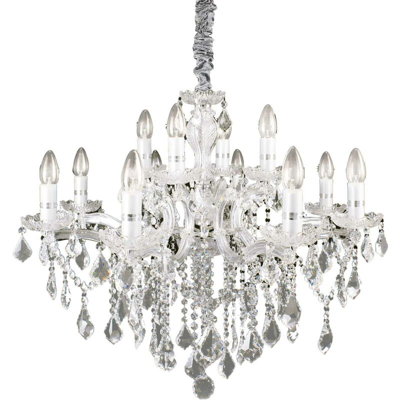 Lampada a sospensione cromo D 720 x H min 900 - max 1200 mm Caratteristiche: Lampadina inclusa=No Kit fissaggio=No Attacco lampada=E14 Volt=220-240 V AC Watt=E14 max 12 x 40W Finitura=cromo Colore rosone=cromo Materiale=Vetro,Cristallo Dimensioni= D 720 x H min 900 / max 1200 mm