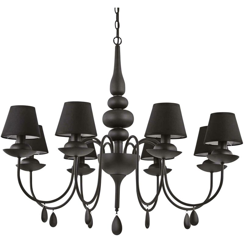 Lampada a sospensione nero D 920 x H min 990 - max 1800 mm Caratteristiche: Lampadina inclusa=No Kit fissaggio=No Attacco lampada=E14 Volt=220-240 V AC Watt=E14 max 8 x 40W Finitura=nero Colore rosone=nero Materiale=Metallo,Vetro Dimensioni= D 920 x H min 990 / max 1800 mm