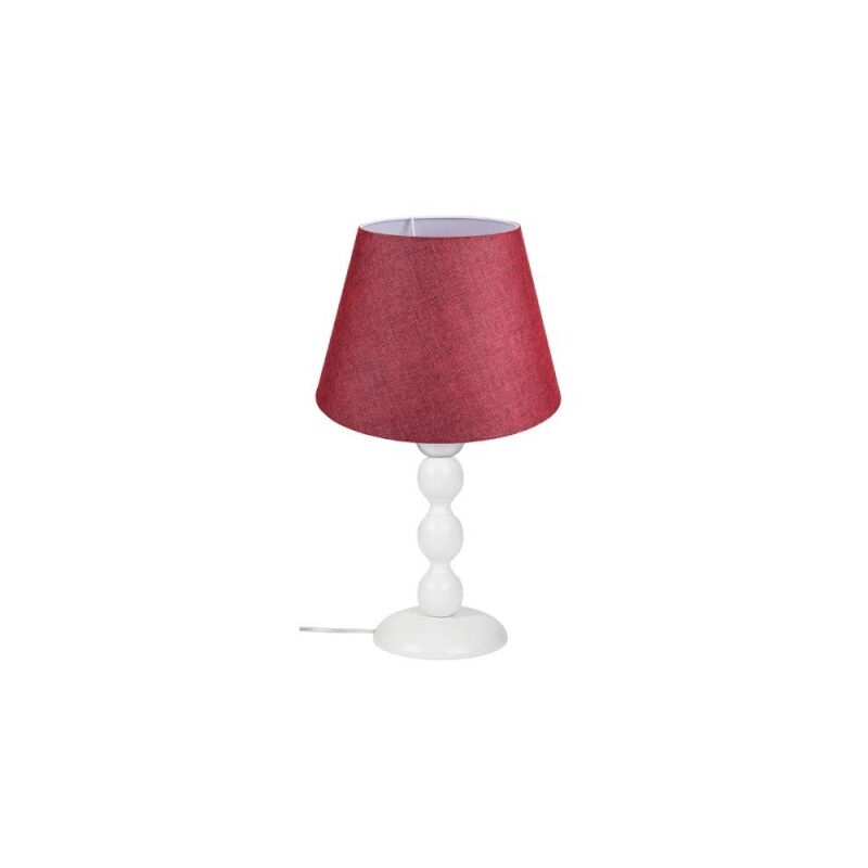 Lampada da tavolo LAGUNAH272865 Caratteristiche: Base in legno bianca. Paralume tessuto rosso. Misure paralume L 30 X H 22 cm. Misure base L 17 X H 27 cm. Attacco lampadina 1 x E27 60w. ASZ0553+MDL2865.