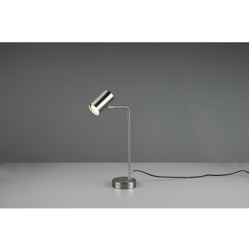 La lampada da tavolo MARLEY di Trio Lighting è composta da una struttura in metallo con fusto sottile e curvo e diffusore cilindrico finitura nichel opaco, interruttore ON/OFF incluso. Dotata di alloggio per lampadina GU10 max 5 watt (acquistabile separatamente). Un elemento semplice e minimale dal design moderno, perfetto sia per la vostra casa, ad esempio per la scrivania della zona living, sia per ambienti come studi medici o uffici. Disponibili anche nelle varianti di finiture.