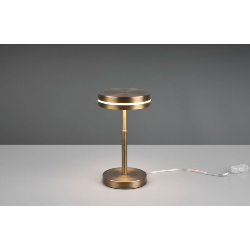 Lampada da Tavolo Moderna Disco Led Ottone Invecchiato La lampada da tavolo Franklin di Trio Lighting è composta da una struttura semplice in metallo di colore ottone invecchiato con base rotonda, fusto lineare e diffusore a forma di disco. Interruttore su cavo. Sorgente luminosa a Led integrato da 6 watt, resa luminosa 700 lumen, temperatura colore 3000k (luce calda). Un piccolo elemento di design moderno ed originale da poter collocare sopra console, tavoli, comodini e scrivanie di ambienti residenziali o contesti ricettivi e lavorativi. Perfetta ad esempio per un ufficio, un ingresso o un soggiorno living. Disponibile anche la versione di colore nichel o ottone e altri articoli correlati della stessa serie. Caratteristiche: Struttura in metallo di colore ottone invecchiato Base rotonda Fusto lineare Diffusore a forma di disco Sorgente luminosa a Led integrato da 6 watt Resa luminosa 700 lumen Temperatura colore 3000k (luce calda)