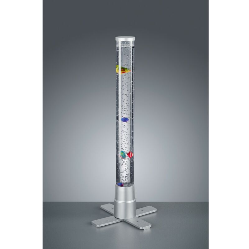 La lampada da tavolo MOTION di Trio Lighting è composta da una struttura cilindrica in plastica di colore titano e diffusore in acrilico trasparente, interruttore a filo incluso. Dotata di modulo led integrato LED SMD da 2,4 watt, temperatura colore 3000k (luce calda) con dispositivo RGB che permette di variare il colore della luce (blu, verde e rossa). Una volta accesa la lampada crea un effetto galleggiamento dei pesciolini all'interno del diffusore. Una simpatica lampada da tavolo ideale per la cameretta dei bambini. Disponibile anche la piantana della stessa serie.