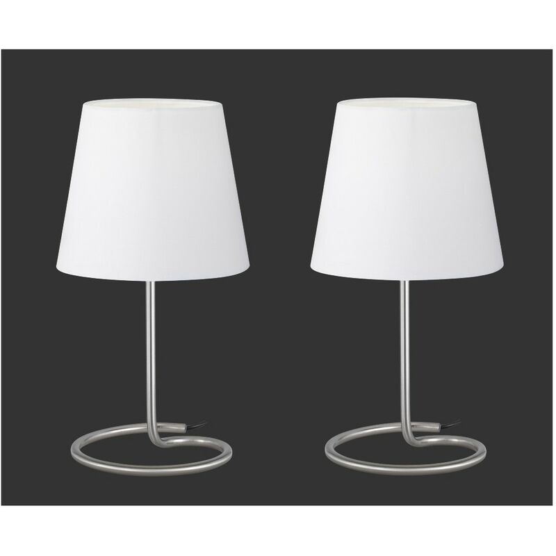 Set Due Lumetti Moderni Nichel Paralume Bianco Le lampade da tavolo TWIN di Trio Lighting presentano una base metallica a girandola finitura nichel opaco e paralume cilindrico in tessuto bianco. Interruttore ON/OFF su cavo. Ognuna dotata di alloggio per lampadina E14 da max 40 watt, acquistabili separatamente. Si consiglia l'utilizzo di lampadine a filamento Led sia per una migliore resa luminosa che per un basso consumo energetico. Dal design semplice e moderno, questi lumetti economici possono essere posizionati per illuminare i comodini della vostra camera da letto o ancora come complemento d'arredo per consolle di zone living e ingressi, creando un'atmosfera calda ed accogliente. Disponibile anche la variante di colore con paralume grigio. Caratteristiche: Base metallica a girandola finitura nichel opaco Paralume cilindrico in tessuto bianco Interruttore ON/OFF su cavo Alloggio per lampadina E14 da max 40 watt Design semplice e moderno Disponibile anche con paralume grigio
