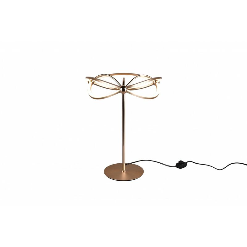 Lumetto Moderno Fiocco Led Ottone Satinato La lampada da tavolo Charivari di Trio Lighting è composta da una base tonda con diffusore a forma di fiocco di colore ottone satinato, interruttore on/off su cavo. Sorgente luminosa a LED integrato 20 watt, resa luminosa 2500 lumen, temperatura colore 3000k (luce calda). Possibilità di regolare in modo graduale l'intensità di luce grazie al dimmer integrato. Un lumetto dalla forma particolare, design moderno, collocabile facilmente sopra i comodini di una camera da letto, il tavolino di un ingresso o la console di un soggiorno. Disponibile anche la versione di colore nichel opaco. Caratteristiche: Base tonda con diffusore a forma di fiocco Colore: ottone satinato Sorgente luminosa: LED integrato 20 watt Resa luminosa: 2500 lumen Temperatura colore: 3000k (luce calda) Dimmer integrato per regolare l'intensità di luce Design moderno Adatto per comodini, ingressi e soggiorni Disponibile anche in colore nichel opaco