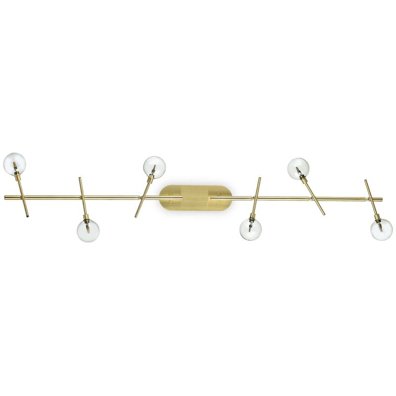 Maracas PL6 Ottone - Lampada Soffitto 1180x200x280mm Caratteristiche: Lampadina inclusa=Yes Kit fissaggio=No Attacco lampada=G4 Volt=220-240 V AC Watt=G4 max 6 x 2W Materiale=Metallo,Vetro Dimensioni= L 1180 x H 200 x P 280 mm