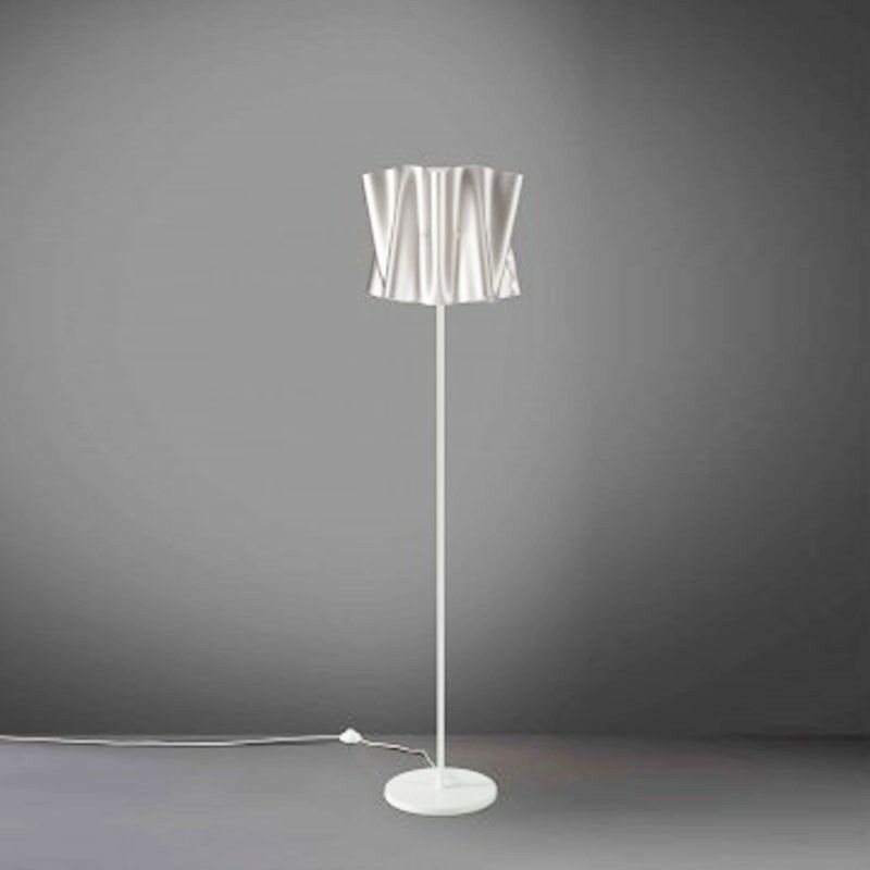 Piantana base e stelo in metallo FOLIO paralume Argento diametro 40x h164 cm Lampada disegnata dal design studio di MM Company, formata da un' anima cilindrica in Polilux con una seconda superficie curva che ricrea l'effetto di un tessuto. Specifiche Modello FOLIO Piantana base e stelo in metallo Paralume color Argento Una luce x Max 30W E27 Cavo standard trasparente 300 cm Dimensioni Diametro 40 cm Altezza 164 cm.