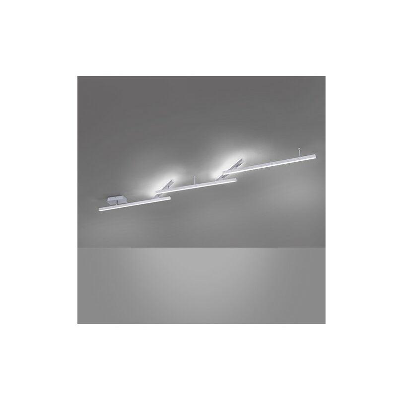 Plafoniera a Bacchette LED RGB con Emissione Diretta e Indiretta Melby Smart Control La plafoniera Melby di Trio Lighting è composta da bacchette in metallo di colore nichel opaco a led integrato con doppia emissione di luce verso l'alto e verso il basso, luce indiretta e indiretta. Dotata di modulo Led SMD RGB integrato da 23 watt, resa luminosa 2200 lumen, temperatura colore da 3000k a 5000k (luce calda, fredda e naturale). Gli apparecchi della TRIO con tecnologia WIZ, come la plafoniera Melby, consentono impostazioni di illuminazione affascinanti che possono essere gestite, programmate e controllate individualmente, in modo da creare l'atmosfera desiderata per ogni occasione. La luminosità e il colore della luce (verde, rossa, blu e bianca) di questa lampada può essere regolata in modo graduale tramite un dimmer integrato. Non compatibile con dimmer esterno. L'accensione, lo spegnimento e la regolazione avvengono mediante il pratico telecomando in dotazione oppure tramite una
