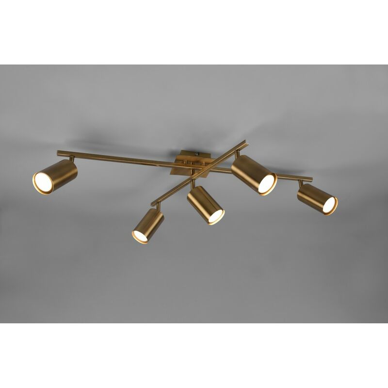 Plafoniera con 5 Faretti Orientabili in Ottone Invecchiato Marley di Trio Lighting è una lampada da soffitto composta da rosone quadrato e 2 bracci con 5 faretti spot orientabili, realizzata interamente in metallo finitura ottone invecchiato. È possibile installare 5 lampadine con attacco GU10 max 35 watt, acquistabili separatamente. Un elemento pratico e versatile, con il suo design moderno si adatta bene a tutti gli ambienti, perfetto per essere installato ad esempio nella zona living, all'ingresso o nello studio. Disponibili anche altri articoli della stessa serie. Caratteristiche: Numero di faretti: 5 Materiale: Metallo Finitura: Ottone Invecchiato Attacco lampadine: GU10 Potenza massima: 35 watt
