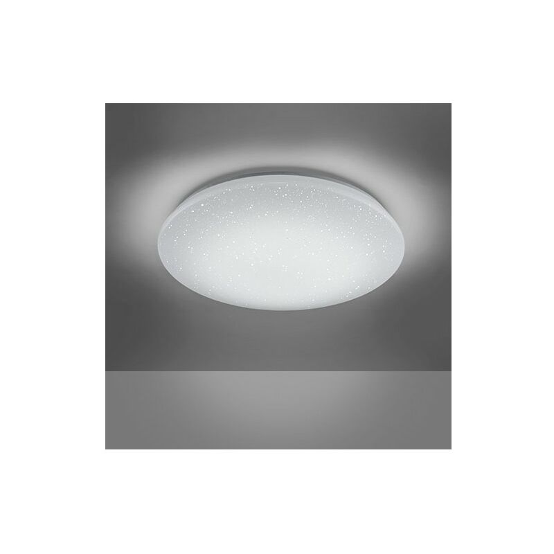 Plafoniera Moderna Led RGB Effetto Cielo Stellato Bianco Ø50 cm La lampada da soffitto Charly di Trio Lighting ha una struttura rotonda realizzata interamente in plastica bianca con diffusore effetto stelle glitterate. Dotata di modulo led integrato SMD LED 27 watt, 2550 lumen, da 3000k a 5500 (luce calda). L'intensità della sua luminosità è regolata tramite dimmer integrato attivato da telecomando in dotazione, mentre il dispositivo RGBW di cui è dotata permette di variare il colore della luce (rosso, blu, verde e bianco. Non compatibile con dimmer esterno. Grazie alla funzione di memorizzazione, l'ultimo settaggio verrà impostato alla prima accensione. L'effetto cielo stellato e l'impostazione luce notturna rendono questa plafoniera unica e affascinante e all'avanguardia grazie alla tecnologia WIZ che permette di gestire le varie impostazioni con estrema facilità. Un elemento dal design moderno, pratico e versatile, perfetto per la camerette dei bambini. Caratteristiche: Struttura