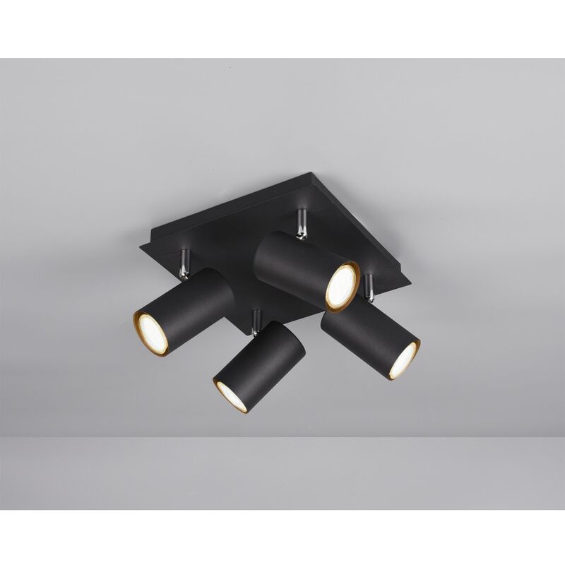 Plafoniera Quadrata 4 Faretti Orientabili Nero La lampada da soffitto Marley del brand Trio Lighting è una plafoniera composta da base quadrata e 4 faretti spot orientabili, realizzata interamente in metallo di colore nero opaco. È possibile installare 4 lampadine con attacco GU10 max 35 watt, acquistabili separatamente. Un elemento pratico e versatile dal design lineare e moderno che si sposa bene ad ogni tipologia di ambiente sia residenziale che lavorativi o commerciale. Perfetto per essere installato ad esempio in una zona living, un ingresso o uno studio. Caratteristiche: Colore: Nero Disponibile anche in colore: Bianco, Nichel, Ruggine
