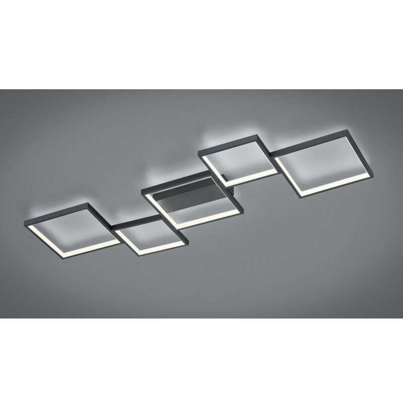 Plafoniera Led 5 Quadrati L120 cm Nero La plafoniera SORRENTO di Trio Lighting è realizzata da una struttura in metallo finitura nero opaco, base rettangolare e 5 diffusori a forma di quadrato con led integrato. Dotata di modulo Led integrato (SMD LED da 34 watt, 3400 lumen, 3000k luce calda). La luminosità può essere regolata in modo graduale tramite un dimmer integrato. Non compatibile con dimmer esterno. Un elemento squadrato dal design semplice e ricercato, perfetto per arredare e illuminare con stile e originalità ogni ambiente della vostra casa, da posizionare ad esempio nella zona living, nella sala da pranzo o camera da letto. Disponibile anche nella variante di finitura alluminio spazzoalto. Caratteristiche: Struttura in metallo finitura nero opaco Base rettangolare 5 diffusori a forma di quadrato con led integrato Modulo Led integrato (SMD LED da 34 watt, 3400 lumen, 3000k luce calda) Luminosità regolabile tramite dimmer integrato Non compatibile con dimmer esterno Design