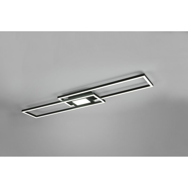 Plafoniera Rettangolare a Doppia Emissione LED Ganado Nero La plafoniera Ganado del brand Trio Lighting presenta una struttura in metallo di colore nero opaco composta da doppio diffusore rettangolare. Sorgente luminosa con 2 SMD LED integrati, uno da 38 watt, resa luminosa 4500 lumen e uno da 10 watt. Il colore della luce insieme all'intensità luminosa possono essere regolate in modo graduale a diversi livelli grazie al dimmer integrato. Non compatibile con dimmer esterno. Inoltre, la funzione RGBW consente di scegliere tra i colori bianco, rosso, verde e blu per illuminare l'ambiente con atmosfere uniche e personalizzate. Questa lampada fornisce una luce confortevole e priva di abbagliamento e le diverse fonti luminose possono essere accese e spente indipendentemente l'una dall'altra. Impostazione luce notturna. Tutte le funzioni possono essere facilmente gestite tramite il pratico telecomando in dotazione. Una lampada da soffitto dal design squadrato e minimale che arreda con