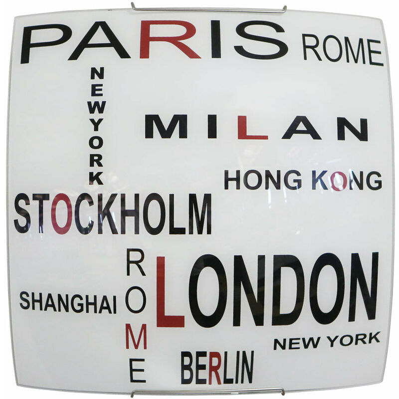 Plafoniera in vetro bianco decorato ganci acciaio 2 lampade E27 Dimensioni Larghezza 40 cm Profondita 11 cm Altezza 40 cm
