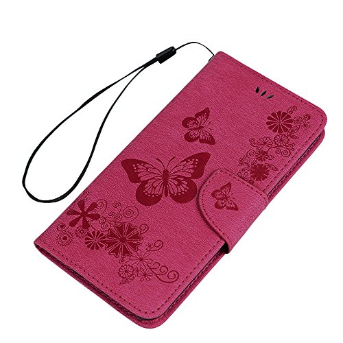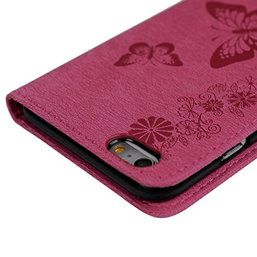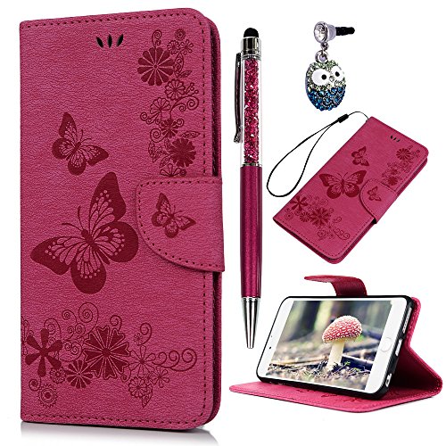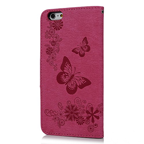 IPhone 6/6S Plus Custodia Pelle Case, kasos cassa del cuoio Book Type PU Pelle + TPU interno tasche parati dipinte chiusura magnetica custodia in pelle Cover, Blu + Touch Pen + TAPPO Anti Polvere, rosa rossa, iPhone 6/6S Plus