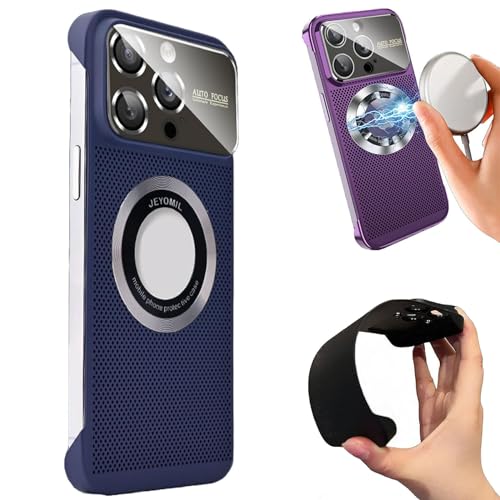 For Iphone 14 Borderless Big Window Cooling Phone Case, Electroplating Heat Dissipation Phone Case, Electroplating Magnetic Heat Dissipation Phone Case With 4000 Cooling Holes (Navy Blue,12pro)