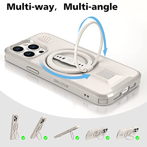 Ewa for iPhone 15 Pro Phone Case [Compatible with Magsafe] with Ring Stand, Silicone Strap Grip, Dual Magnet BackSnap, Rugged Drop Protection 6.1"(White Smoke)