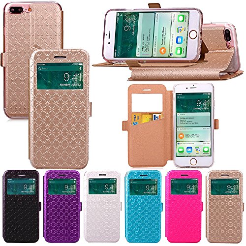 IPhone Case Cover Finestra di cuoio di iPhone 7 Plus cassa dell'unità di elaborazione della grata di griglia del basamento del modello Case Cover con fessura per carta per iPhone 7 Plus ( Color: Purple, Size: IPhone 7 Plus )