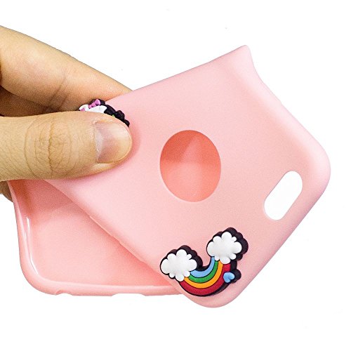 IPhone 6 /6S Cover 3D Lovely Cartoon Arcobaleno Cavallo Sollievo Motif Guscio Morbido Sottile TPU Silicone Custodia Antiurto della Calotta Shockproof Anti-Scraches Skin Shell Housing Protezione Bumper Case Flessibile Copertura in Forma Colore Candy - Rosa