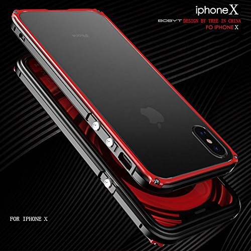IPhone X Custodia, CHIHENG Alluminio Metallo Bumper Cover Con PC lunotto posteriore trasparente Antiurto Antiscratch Protettiva caso Custodia per iPhone X 5.8" Nero+Rosso