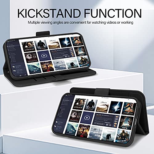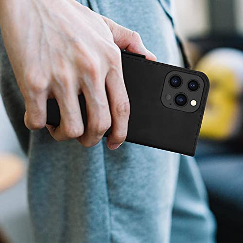 FYY iPhone 13 Pro Max Custodia 5G,Cover per iphone 13 Pro Max 6.7'' 2021,con [chiusura magnetica][supporto per ricarica wireless] [portacarte]flip case tramite custodia in pelle,Nero