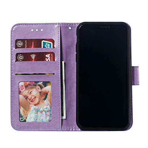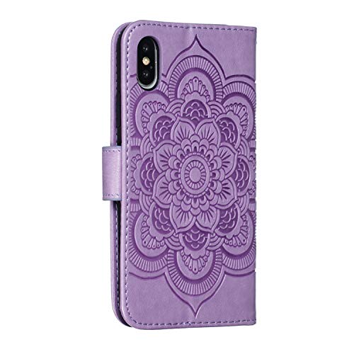 IPhone X Custodia Flip, Goffratura Design Case in PU Pelle Internamente Silicone TPU Cover Portafoglio Cover Premium Custodia per Apple iPhone X/iPhone XS. LD Mandala Purple