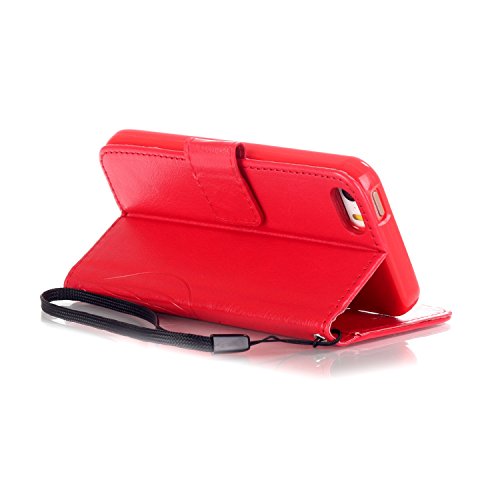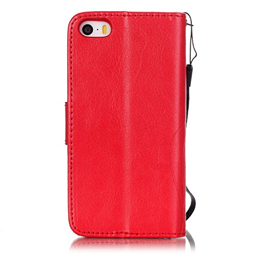 Per iphone 5 5S SE Custodia,Funyye Per iphone 5/5s/SE Pelle Libro Copertura Con Cordino Shell Supporto Stand Porta Carte Portafoglio Flip Wallet Cover Chiusura Magnetica Protezione Caso Elegante Fiori e Farfalle -Rosso