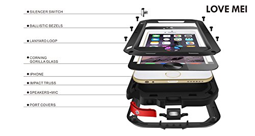 IPhone 6S / 6 Custodia, Love Mei Metal [Alluminio] e Silicone Antiurto [Ultra Robusto] Antishock Proteggi Schermo [Vetro Gorila Glass] Antipolvere Blindati - Nero