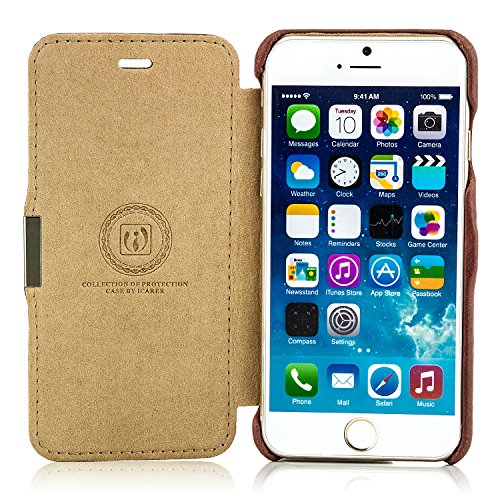 IPhone 6 / 6S Custodia in Pelle [iCareR Original] Copertura Flip Cover Etui Portafoglio Case Pregiata Vera Pelle Card Slot Marrone