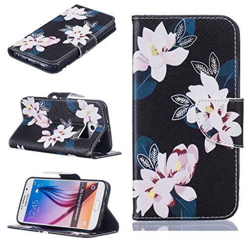 IPhone 6 Custodia, iPhone 6S Custodia, con protezione schermo,], qimmortal antigraffio Custodia posteriore morbida in silicone, elegante stampato Cute Disegno colorato staccabile pu flip portafoglio integrato in pelle staccabile Chiusura Lock [con laccio/Corda] Portafoglio Incorporato per iPhone 6/6S, Black Lily, Samsung Galaxy S6