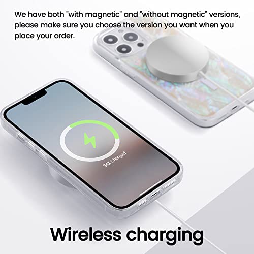 [Doppio strato con conchiglia reale]: Il retro trasparente antigraffio ha conchiglie reali. Caratteristiche uniche conchiglie rende il caso iPhone 13 Pro carino diventare colorato sotto la luce del sole o luce. Dà un aspetto più estetico per il vostro iPhone.
