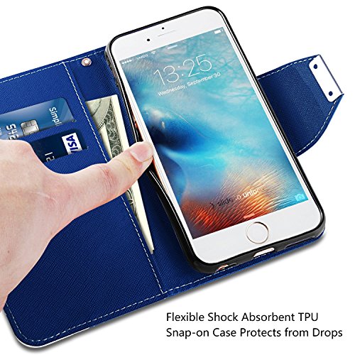 IPhone 6 Custodia - Vakoo iPhone 6S Cover flip a portafoglio in pelle sintetica premium Protettiva Custodia per Apple iPhone 6/6S (Blau Bianco)