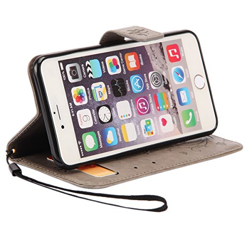 IPhone 6 Plus Cover Bumper,iPhone 6 Plus Custodia Pelle,URFEDA Neo Morbida Corda Anti-Theft Puro Completa Donna Ragazza Ragazzo Uomo Rigida PU Leather Flip Libro Bookstyle Wallet Portafoglio Magnetica Disegno Grigio Protezione Cover Case Bumper per Apple iPhone 6 Plus/6S Plus 5.5"Pollici