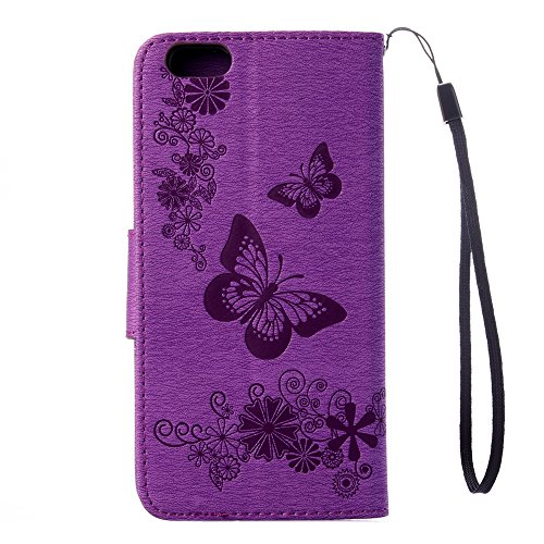 IPhone 6 Plus / iPhone 6S Plus Custodia, COOSTOREEU Copertura della cassa del basamento del supporto del raccoglitore di cuoio dell'unità di elaborazione della farfalle per iPhone 6 Plus / iPhone 6S Plus 5.5 Inch,Viola