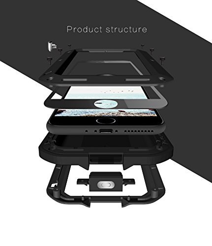 IPhone 8 Plus / iPhone 7 Plus Custodia, Love Mei Metal [Alluminio] e Silicone Antiurto [Ultra Robusto] Antishock Proteggi Schermo [Vetro Gorila Glass] Antipolvere Blindati - Nero