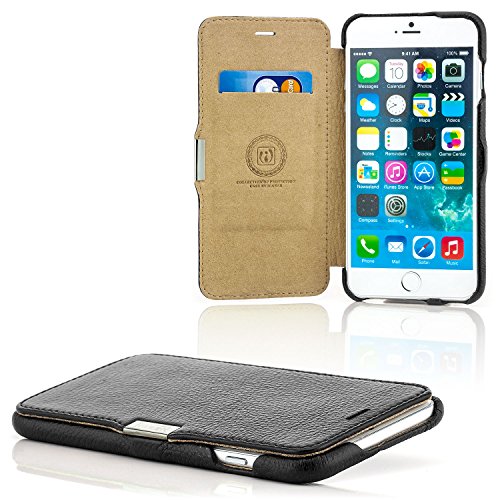 IPhone 6 Plus / 6S Plus Custodia in Pelle [iCareR Original] Copertura Flip Cover Etui Portafoglio Case Pregiata Vera Pelle Card Slot Litchi Nero