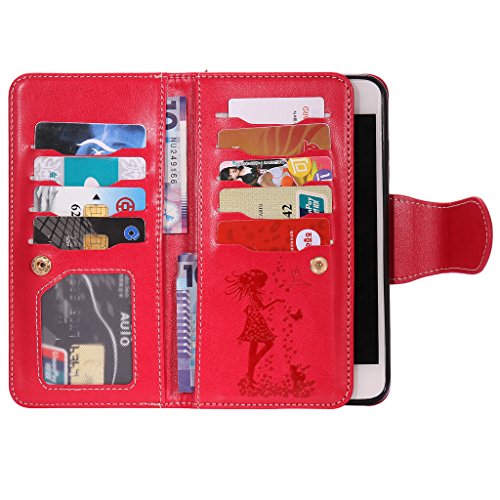 IPhone 6 Plus/6s Plus case [with free tempered glass Screen Protector], mo-beauty ® floreale elegante vintage pressato Girl Premium custodia a portafoglio in pelle PU [Embedded Flip magnetico staccabile Close Lock] [con 9 carte di credito slot] Folio Book Style design pattern design custodia protettiva per iPhone 6 Plus/6s Plus, Ecopelle, Red, iPhone 6 Plus/6S Plus 5.5" inch