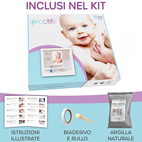 IPiccoli | Cornice Impronta Mani e Piedi Neonati. Regalo Nascita. Kit Calco Impronte Neonato. Personalizzabile. Design Classico. 32x29cm