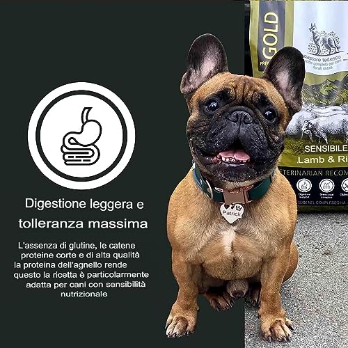 Ipoallergenico | Cibo secco senza cereali per cani | Agnello e riso | Delicato per lo stomaco dei cani sensibili | Ricco di carne