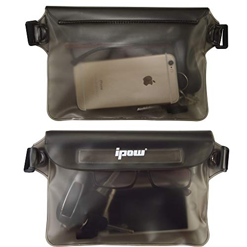 Ipow 2 PZ Borsa Impermeabile Marsupio Impermeabile Mare Universale Chiusura a 3 Zip Super Protezione Certificato IPX8 con Cintura Regolabile per Documento Cellulare, Blu e Nero Semitrasparente