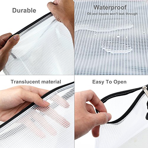 【MATERIALE SPESSO IN PVC】Impermeabile e resistente all'olio (notare che la cerniera non è impermeabile). I materiali sono resistenti ma non rigidi, quindi queste tasche a rete possono essere facilmente piegate o piegate.
